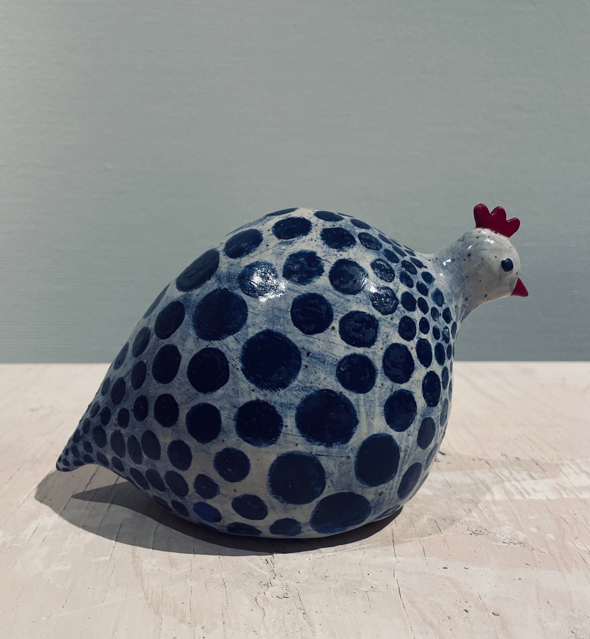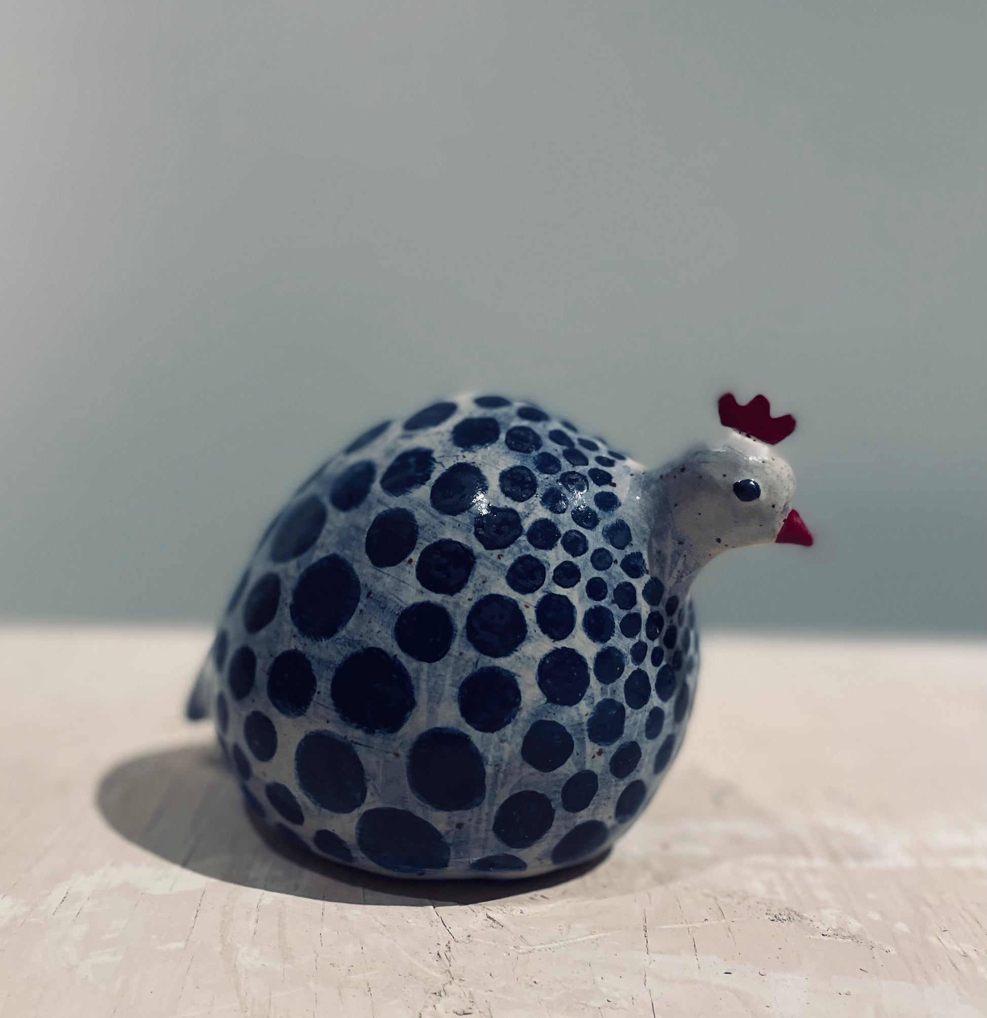 Höna skulpterad i stengodslera. Skulpterad och dekorerad förhand enligt konsthantverkets alla traditioner.